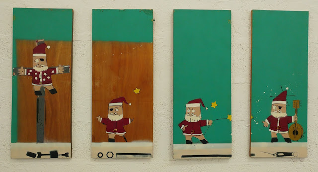 משלימים את ציוריו המגרדים את שכבות החשוף.